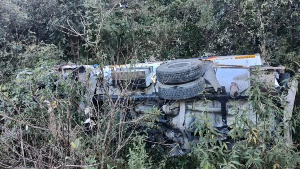 देहरादून। शनिवार की सुबह केम्पटी फॉल के पास पेट्रोल और डीजल से भरा एक ट्रक पेट्रोल पंप के ठीक सामने अचानक गहरी खाई में गिर गया। खाई में गिरते ही ट्रक के टैंक फट गए और डीजल-पेट्रोल का तीव्र रिसाव शुरू हो गया। जिससे इलाके में आग लगने का खतरा गहरा गया। घटना सुबह के समय की है, जब देहरादून से आ रहा ट्रक, जो पेट्रोल और डीजल से पूरी तरह भरा हुआ था, केम्पटी स्थित पेट्रोल पंप पर आपूर्ति के लिए रुका था। फिलहाल पुलिस घटना की जांच कर रही है।