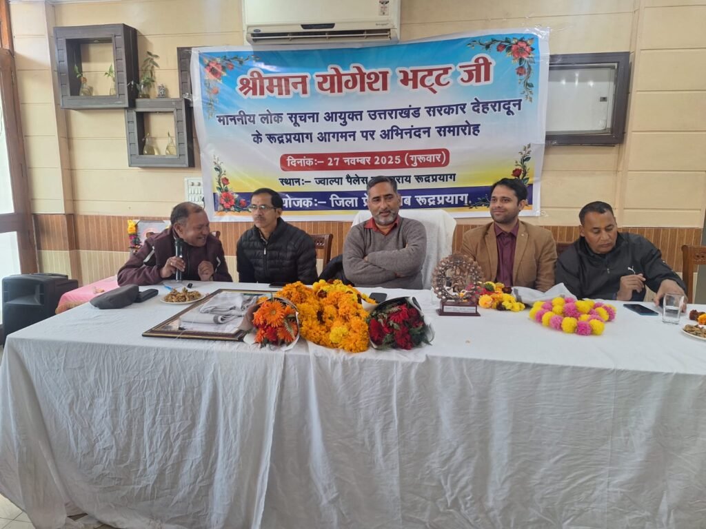 बृहस्पतिवार को रुद्रप्रयाग जिला मुख्यालय पहुंचे लोक सूचना आयुक्त योगेश भट्ट का पत्रकारों ने जोरदार स्वागत किया। इस दौरान प्रेस क्लब की ओर से आयोजित कार्यक्रम की शुरुआत अनूप नेगी पब्लिक स्कूल की छात्राओं ने स्वागत गान से की, जिसके बाद अतिथि का पारंपरिक रूप से अभिवादन किया गया। कार्यक्रम में लोक सूचना आयुक्त योगेश भट्ट ने सूचना के अधिकार के महत्व पर विस्तार से प्रकाश डाला। उन्होंने कहा कि सूचना का अधिकार हथियार नहीं, बल्कि एक प्रभावी औजार है, जिसका उपयोग समाज और लोकतंत्र को मजबूत करने के लिए किया जाना चाहिए। उन्होंने पत्रकारों से आरटीआई को पत्रकारिता के साथ जोड़कर देखने की अपील करते हुए कहा कि इससे पत्रकारिता के नए आयाम खुलेंगे तथा शासन-प्रशासन स्तर पर सकारात्मक बदलाव लाए जा सकते हैं।