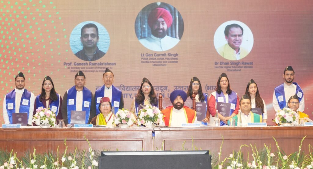 विश्वविद्यालय द्वारा इस वर्ष दीक्षांत समारोह की विषयवस्तु को कृत्रिम बुद्धिमत्ता (एआई) पर केंद्रित किया गया, जिस पर प्रकाश डालते हुए राज्यपाल ने तकनीक और विशेष रूप से आर्टिफिशियल इंटेलिजेंस के संदर्भ में कहा कि वर्तमान समय का यह एक सशक्त माध्यम है, जो शिक्षा, अनुसंधान और कार्यशैली को नई दिशा दे रहा है। अपने सम्बोधन में राज्यपाल ने दीक्षांत समारोह के मुख्य वक्ता एवं आईआईटी बॉम्बे के प्रोफेसर गणेश रामकृष्णन द्वारा ‘ठींतंजळमद’ जैसी स्वदेशी एआई पहल का उल्लेख करते हुए कहा कि भारतीय भाषाओं और संस्कृति के अनुरूप तकनीकी समाधान विकसित करने से तकनीक वास्तव में जन-जन तक पहुँचती है। राज्यपाल ने दून विश्वविद्यालय सहित देश की अमृत पीढ़ी के युवाओं से आह्वान किया कि वे एआई का नैतिक, मानवीय और समाजोपयोगी उपयोग करते हुए उत्तराखण्ड की भौगोलिक चुनौतियों और स्थानीय समस्याओं के समाधान हेतु नवाचार-आधारित कार्य करें। इस अवसर पर राज्यपाल ने कहा कि विकसित भारत /2047 का लक्ष्य केवल आर्थिक प्रगति नहीं, बल्कि सामाजिक न्याय, सांस्कृतिक गौरव और मानवीय मूल्यों से युक्त राष्ट्र-निर्माण का संकल्प है, जिसमें युवाओं की भूमिका निर्णायक होगी। उन्होंने राष्ट्रीय शिक्षा नीति-2020 को दूरदर्शी पहल बताते हुए कहा कि इसका उद्देश्य ‘जॉब सीकर’ नहीं, बल्कि ‘जॉब क्रिएटर’ तैयार करना है, और दून विश्वविद्यालय इस दिशा में सार्थक प्रयास कर रहा है। उत्तराखण्ड की भौगोलिक चुनौतियों का उल्लेख करते हुए राज्यपाल ने कहा कि पलायन और आपदा-संवेदनशीलता जैसी समस्याओं का समाधान स्थानीय नवाचार, स्वरोजगार और सतत विकास में निहित है। उन्होंने छात्राओं की बड़ी भागीदारी पर विशेष प्रसन्नता व्यक्त करते हुए कहा कि महिलाओं की प्रगति ही राज्य की वास्तविक प्रगति है। राज्यपाल ने शिक्षा के वास्तविक उद्देश्य पर प्रकाश डालते हुए कहा कि शिक्षा केवल सूचना देने का माध्यम नहीं, बल्कि चरित्र निर्माण की प्रक्रिया है। उन्होंने सत्य, ईमानदारी, अनुशासन और परोपकार को जीवन की सफलता के मूल स्तंभ बताते हुए विद्यार्थियों से आह्वान किया कि वे किसी भी प्रकार के दुर्व्यसन, नशे या डिजिटल लत से स्वयं को दूर रखें और ‘राष्ट्र प्रथम’ की भावना को अपने जीवन का मार्गदर्शक सिद्धांत बनाएं। राज्यपाल ने विद्यार्थियों को अपनी जड़ों से जुड़े रहने, समाज के कमजोर वर्गों के सशक्तीकरण के लिए कार्य करने और राष्ट्रहित को सर्वोपरि रखने का संदेश दिया। उन्होंने विश्वास व्यक्त किया कि दून विश्वविद्यालय के स्नातक जहाँ भी जाएंगे, राज्य और राष्ट्र के सच्चे दूत बनकर भारत का मान बढ़ाएंगे।