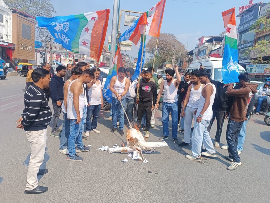 नेशनल स्टूडेंट यूनियन ऑफ इंडिया छात्र संगठन के प्रदेश अध्यक्ष विकास नेगी के नेतृत्व में एनएसयूआई कार्यकर्ताओं ने शर्ट उतारकर कांग्रेस प्रदेश मुख्यालय से ग्लोब चौक से होते हुए एश्ले हॉल चौक तक पैदल मार्च निकाला।. उसके बाद भाजपा सरकार का पुतला दहन करते हुए यूथ कांग्रेस के राष्ट्रीय अध्यक्ष की गिरफ्तारी का विरोध किया। एनएसयूआई के प्रदेश अध्यक्ष विकास नेगी ने कहा कि कुछ दिनों पूर्व एआई समिट में युवा कांग्रेस के कार्यकर्ताओं ने शर्टलेस होकर प्रदर्शन किया था। जिसके बाद पुलिस ने कार्यकर्ताओं पर मुकदमे दर्ज करते हुए यूथ कांग्रेस के राष्ट्रीय अध्यक्ष उदय भानु चिब को गिरफ्तार कर लिया है।