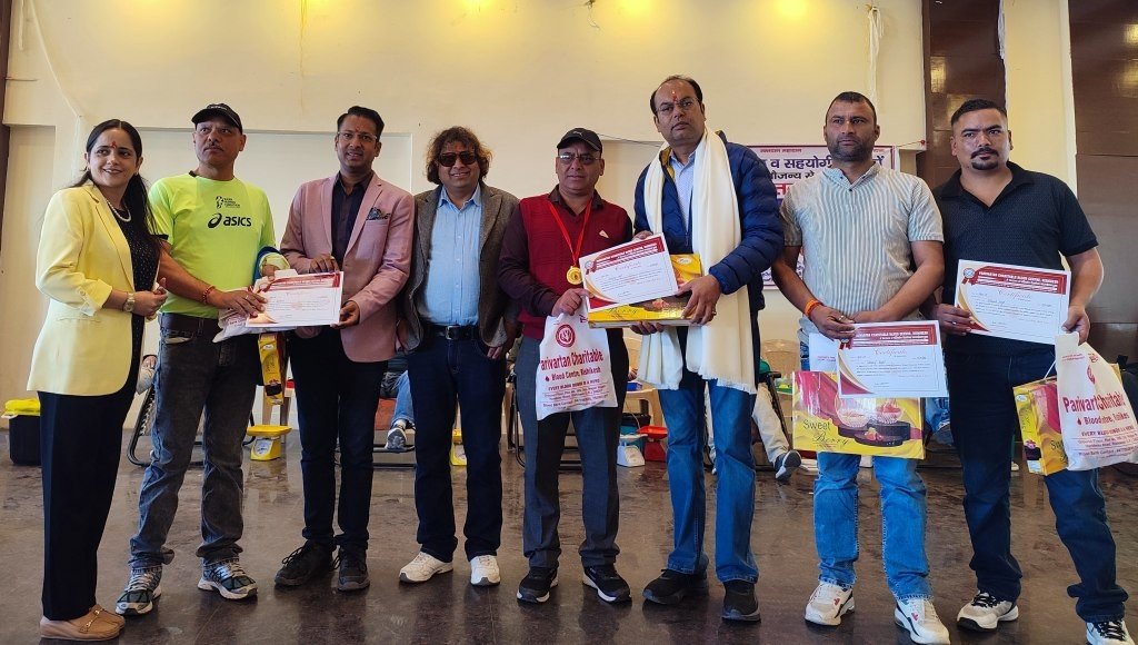 मसूरी। जय बद्री केदार महिला समूह व समाज सेवी देवेंद्र उनियाल व सहयोगी युवाओं के तत्वाधान में राधाकृष्ण मंदिर सभागार में परिवर्तन चेरिटेबल ब्लब सेंटर के सहयोग से रक्तदान शिविर लगाया गया जिसमें 150 से अधिक लोगों ने रक्तदान किया। शिविर का उदघाटन भाजपा मंडल अध्यक्ष रजत अग्रवाल, रोटरी सचिव योगिता गोयल, समाजसेवी देवेद्र उनियाल एवं जय बद्री केदार महिला समूह की अध्यक्ष लक्ष्मी उनियाल ने रीबन काटकर किया। ं
