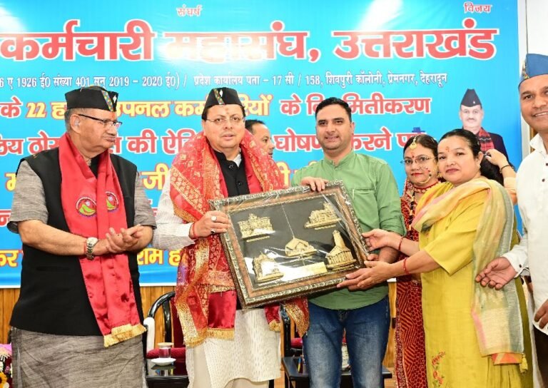 देहरादून। मुख्यमंत्री पुष्कर सिंह धामी ने शनिवार को मुख्य सेवक सदन, देहरादून में उपनल कर्मचारी महासंघ द्वारा आयोजित धन्यवाद/अभिनन्दन समारोह...